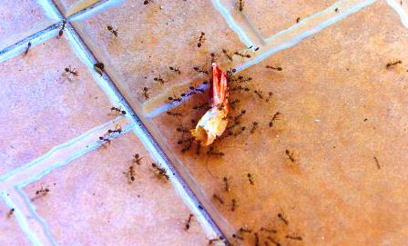Ну и если же вы все-таки заметили колонну маленьких рыжих насекомых на кухне, то встает вопрос, как избавиться от них в домашних условиях. Если на кухне появились эти вредители, начинайте избавляться от них сразу, рыжие муравьи размножаются очень быстро, за год семейство этих насекомых становиться на одну –три тысячи больше особей. Если же в квартире в наличии куркума, вазелин, детская присыпка, крахмал, черный молотый перец, мел расставьте из них ловушки по всему дому. При поддержании таких условий в течение 2-х недель муравьям придется голодно в вашей квартире и придется покинуть, этот дом. Так же помогут избавиться от муравьев приправы на кухне, это могут быть петрушка, мята, гвоздика, чеснок, лавровый лист, сильные запахи будут отпугивать мелких обитателей квартиры. Рыжие муравьи в квартире, как найти гнездо Помните, что одни меры применения приправ, примесей не уничтожат всех муравьев, этим вы их только спугнете из своей квартиры. Не факт, что это же семейство не вернется к вам вновь. Для того чтобы избавиться навсегда от муравьев необходимо найти их гнездо. Название фараоновых муравьёв пришло из Египта, так как впервые эти крохотные насекомые были обнаружены в гробницах египетских фараонов. Отсюда мы понимаем, муравей теплолюбив и обитание его будет укромные уютные уголки, где тепло и влажно, для них это комфортные условия. Вот и ответ на вопрос, как в квартире найти гнездо рыжих муравьев. Могут обитать муравьи в ванной, в ящиках стола, найти их можно в простенках, в щелях в полу, в любой аппаратуре, так же можно обнаружить муравьев на кухне в середине сырого картофеля. Расселение одного муравейника обычно охватывает большую часть территории, т.е. гнёзда можно обнаруживать по всему дому, это является причиной тому, что избавиться от мелких рыжих муравьев очень трудно.
